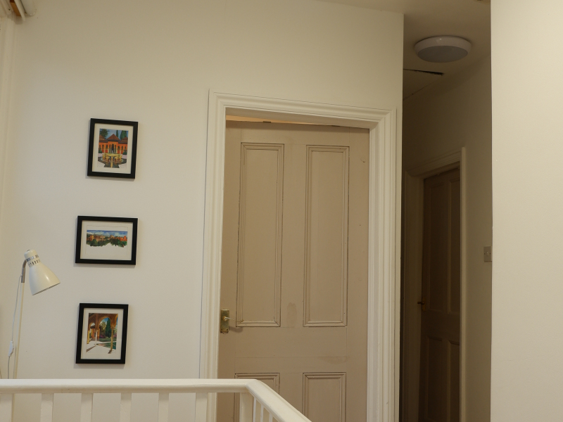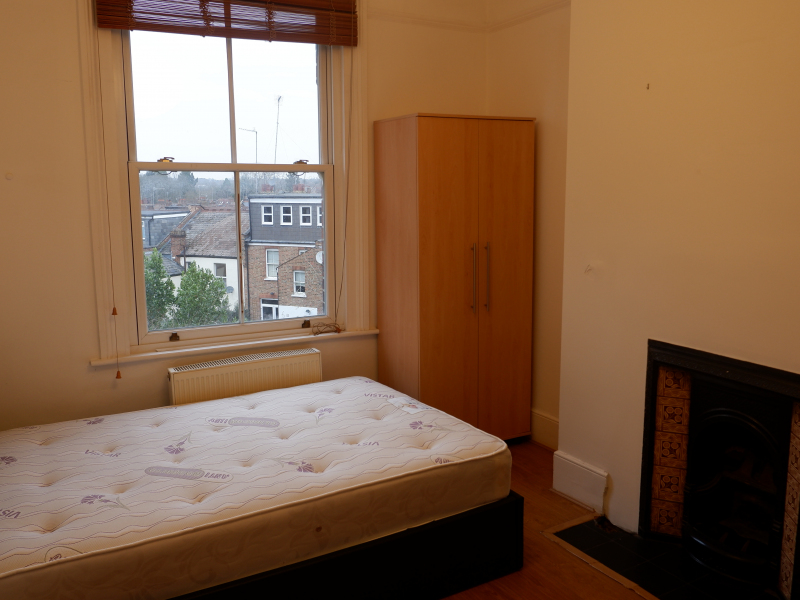 Decent sized room with two wardrobes (removable) and bed with storage. Enough room for a bookshelf and desk. The room is downstairs with a window towards the back of the property with a view down towars the Dollis Valley.