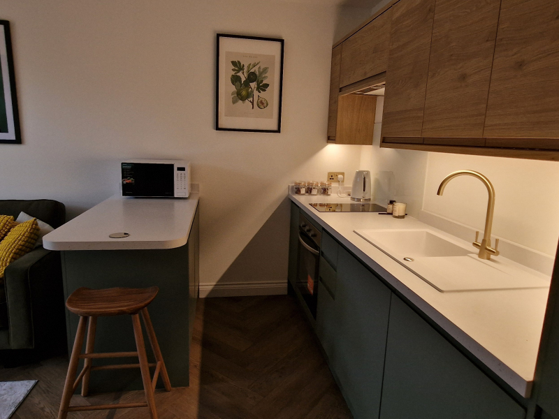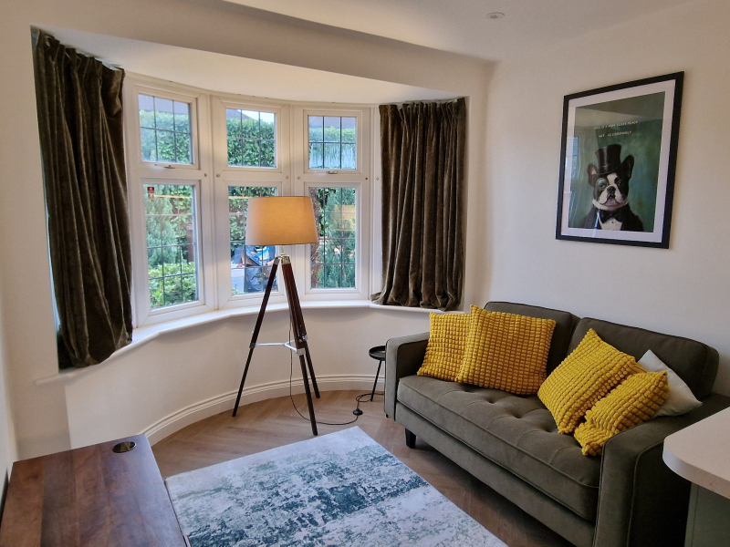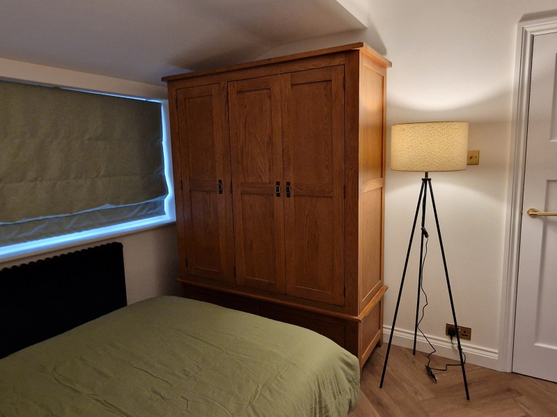Brand new fully renovated and furnished to an exceptional high standard, we have available to rent a unique space incorporating a large double bedroom that also includes your own boutique ‘bouji’ hotel style ensuite, your own cosy and inviting lounge area, your own beautiful brand new fully fitted kitchen & breakfast bar with oven, washing machine, fridge freezer, integrated bin and plenty of storage and your own side entrance for complete privacy. The bedroom features a large solid oak triple wardrobe, an ottoman storage bed and a large storage cupboard, so plenty of space to store your personal items. The bed features a premium Simba mattress along with an electric remote-controlled blind.