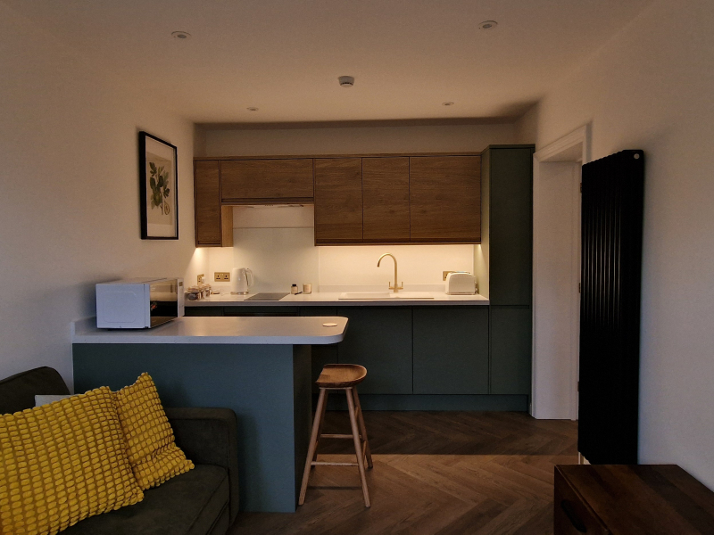 This unique space has been carefully and thoughtfully designed and whilst connected to, and part of the main residence (so you would be a lodger not a tenant) with ‘live-in resident’ landlords, you’d never know it. Even details such as acoustic treatment on walls and doors have been implemented to ensure it feels a home from home. The connection between the main house is via a hidden acoustically treated door which is kept locked for your privacy.