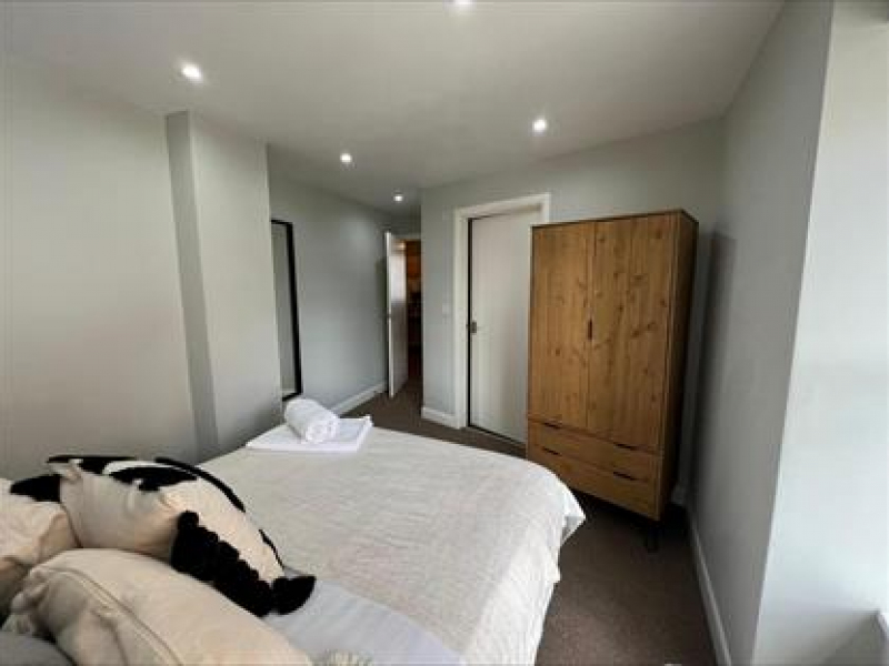 includes, double bed and mattress, chest of drawers. Wardrobe, hand wash basin, shelves