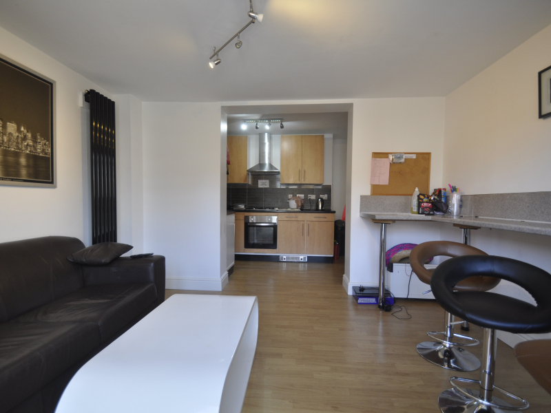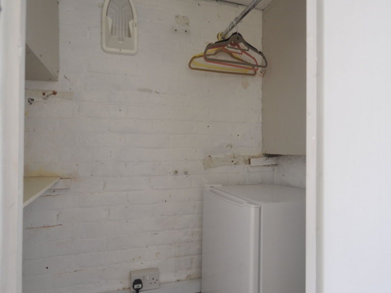 You have a wardrobe, chest of drawers, mirror, sofa, a double bed and a breakfast desk/office desk. You also have your own fridge/freezer.