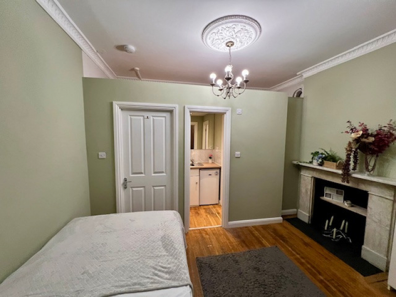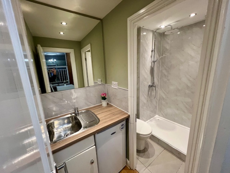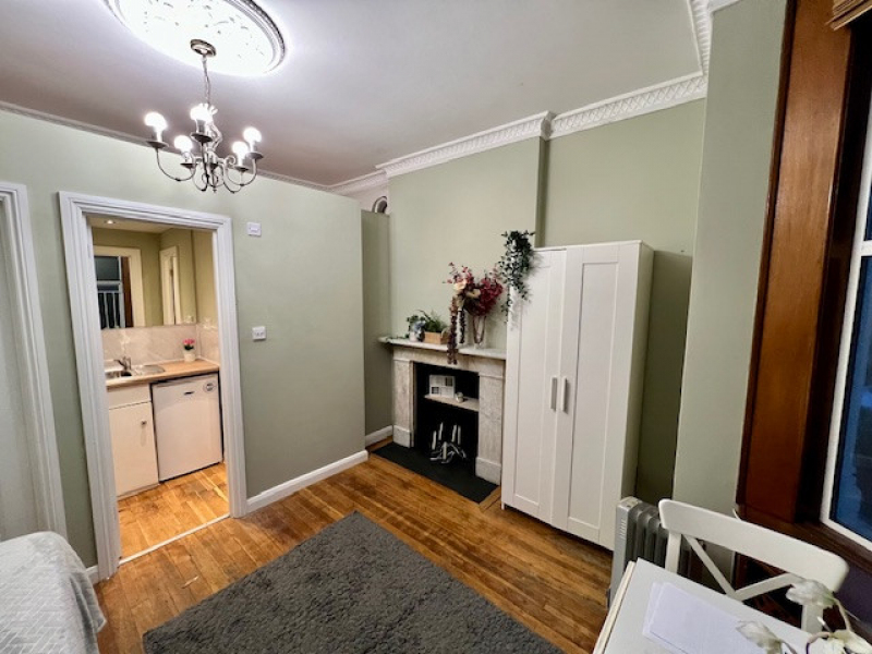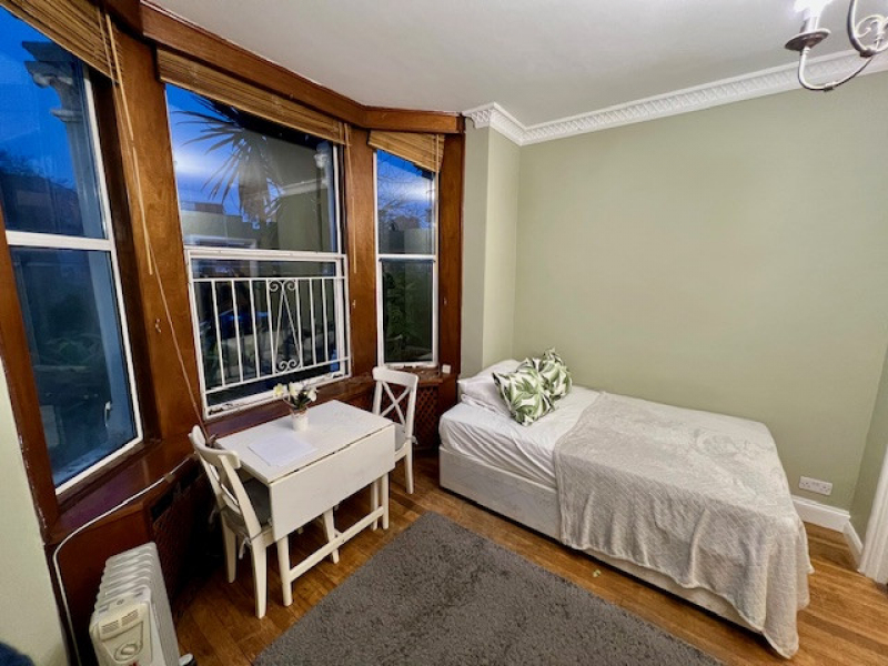 It's located in a 2 floored Victorian House, it's on ground floor it has private bathroom inside, kitchen is shared with another 2 tenants
