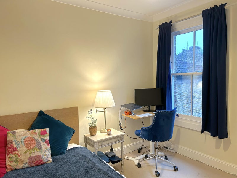 £1250 per month including bills and broadband. Linens provided. Furnished airy double room, high ceilings, with built-in floor-to-ceiling storage & sit/stand desk in a delightful flat with a lovely sitting room and a separate kitchen. Nice Victorian terrace street. Instant pot/air-fryer/dishwasher/washing machine/heated drying rack all assist with life's practicalities. The flat is a short walk from Ravenscourt park, which is lovely for walks. Then Chiswick High Road in one direction and Uxbridge road/Shepherds bush in the other. 10 mins to Shepherd's bush market tube from the bus at the end of the road, 15 mins walk I have never waited more than 2 mins for a bus in the 6 months i've been here-many routes go past. I have lived in plenty of different places and this is my favourite. It has a peaceful atmosphere and I sleep super well here. Round the corner there are about 15 really nice independent cafes. I'm happy to chat and happy to keep to myself depending on how social a flatmate is feeling.