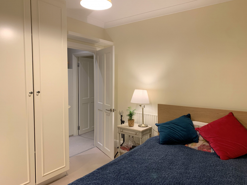 Furnished airy double room, high ceilings, with built-in floor-to-ceiling storage & sit/stand desk in a delightful flat with a lovely sitting room and a separate kitchen. Nice Victorian terrace street.