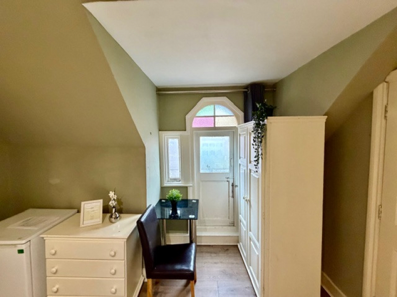 the room is located on the 3rd floor of a Victorian House, each floor has a shared toilet.