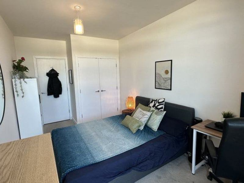 - Queen size bed and mattress, with big built in wardrobe/storage, additional wardrobe, drawers and shelving unit, bedside tables, desk, blinds
