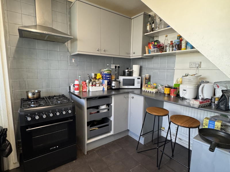 The kitchen is spacious and well equipped, offering plenty of room for cooking and shared use.