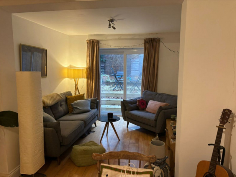 The room available is a double, and the flat is on the ground floor. It’s super cosy, with a spacious open-plan living room/kitchen, a garden, and even a basement for extra storage. There is a shared bathroom but the other bedroom has an en-suite shower and sink.