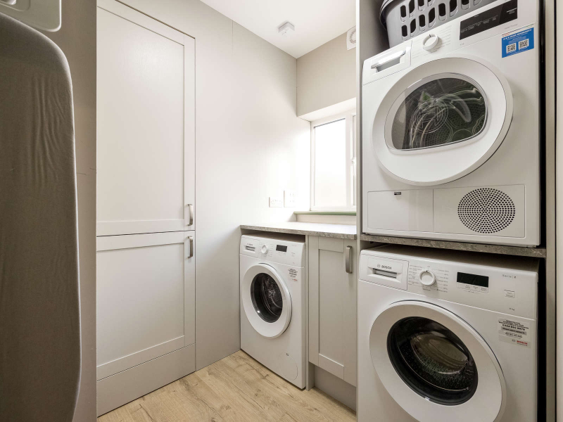 Enjoy an open-plan kitchen/living area with everything provided - washing machines, dryers, crockery, and cookware.