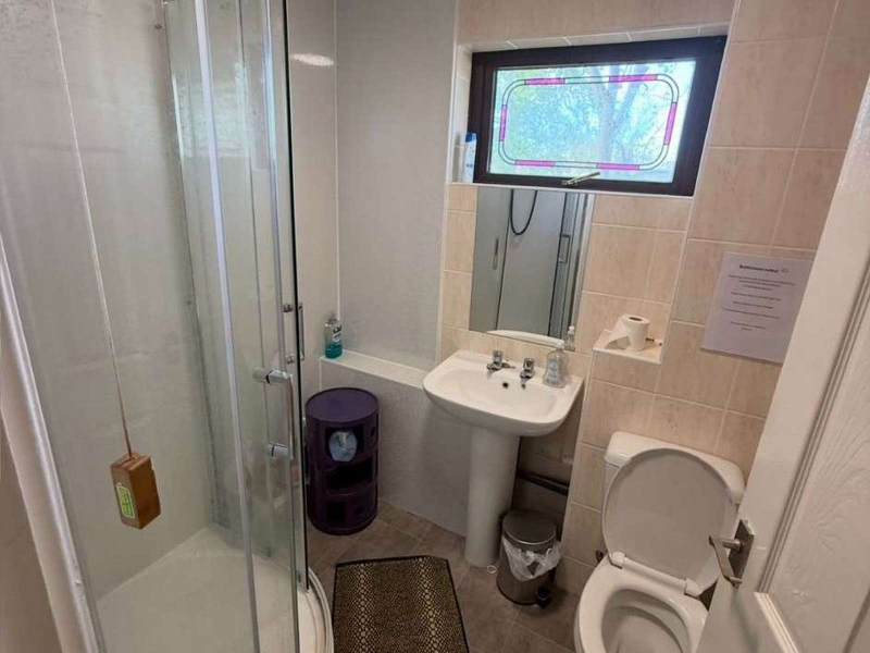 The room includes a large double bed with a comfortable mattress, bedside cabinet with storage and an in-built wardrobe. A desk can be provided if needed. (Bed linen not provided.)